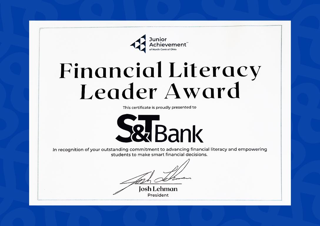 S&T was grateful to receive a 2025 Certificate of Recognition from Junior Achievement (JA) North Central Ohio for its outstanding commitment to financial literacy while empowering students to make smart financial decisions. JA believes that education is the key to future preparedness and accomplishment as children develop, and their programs work to take what students learn in the classroom and connect it to real life.