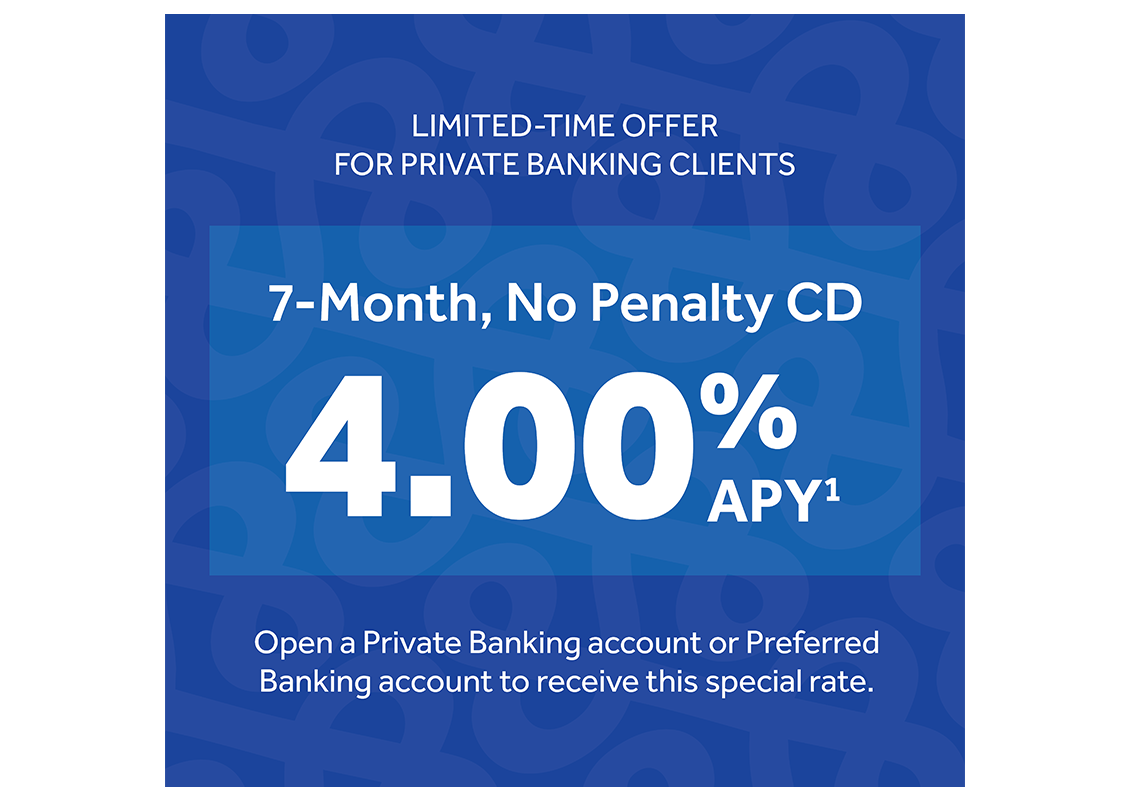 Speak with a private banker today to open your Private Banking checking or Preferred Banking account to receive this great CD rate. Contact a private banker in your area from the team listing below.